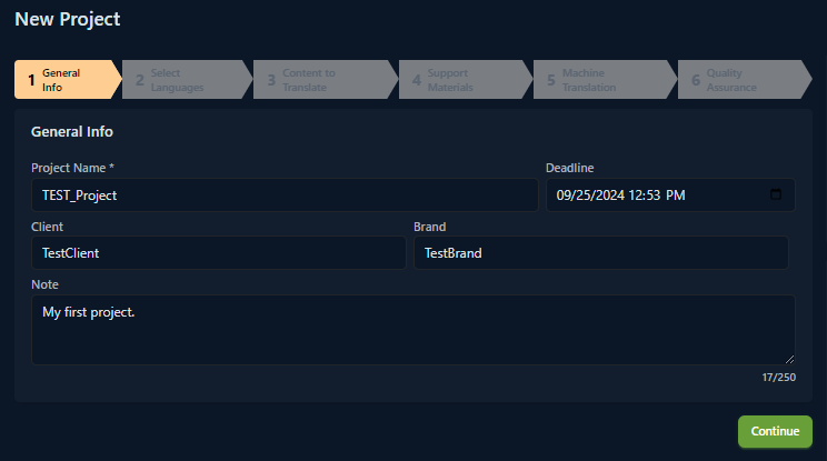 Setting up a new project is quick and easy. The wizard guides you through six steps.