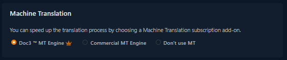 Note: This solution does not rely on commercial machine translation engines and content from the public field. We plan to add more MT engines soon. If you need to use a specific MT engine, please contact support.